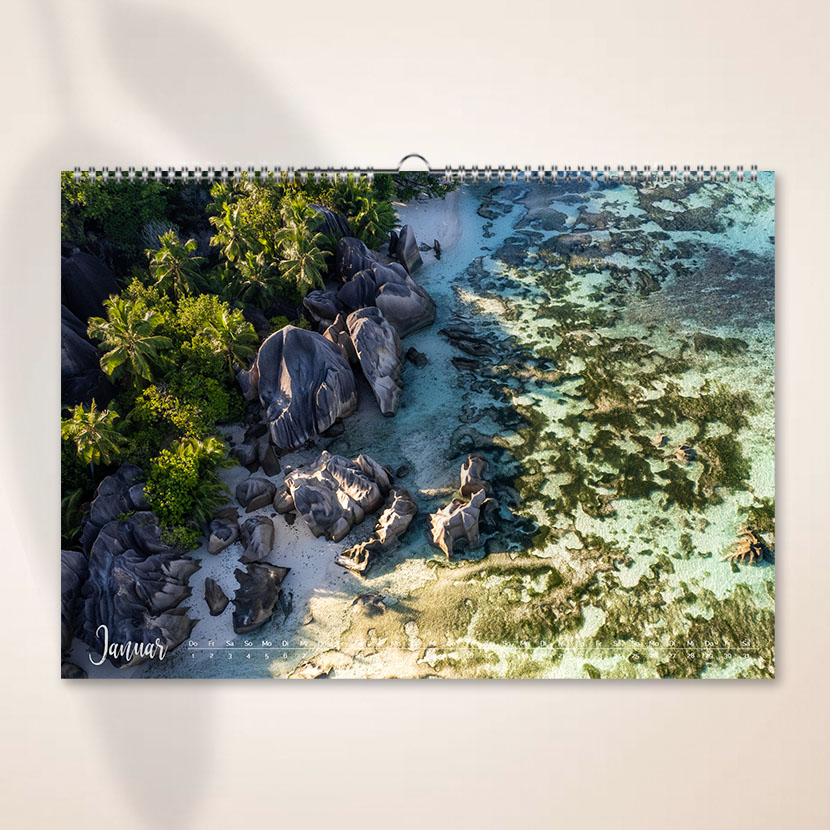 Erlebe die Seychellen das ganze Jahr! 12 traumhafte Inselmotive in DIN A3. Nachhaltig produziert, limitierte Auflage & versandkostenfrei in Deutschland.