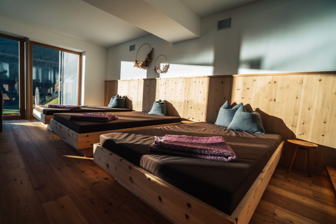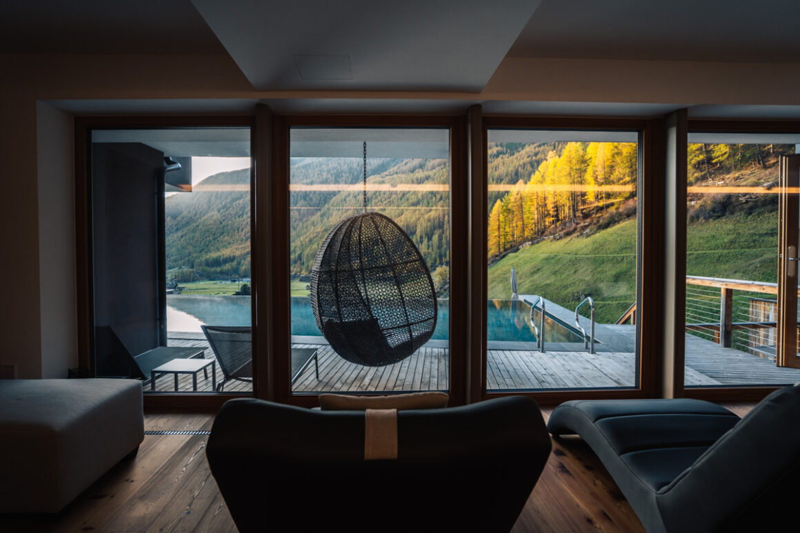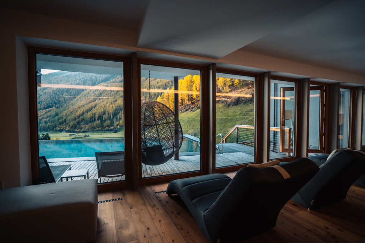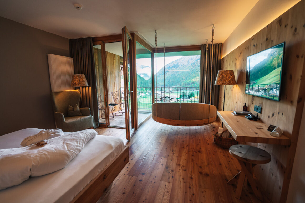 Das Tonzhaus hat insgesamt 31 Zimmer und Suiten. Ich war in der Zimmerkategorie Pinus Superior untergebracht, ein wunderschönes Zimmer mit Lärchenholzboden und handgemachten Möbeln aus Zirbe. Mein Highlight war die Panorama-Kuschel-Nische mit Schwebeliege und der Panoramablick in die Berge. Ich habe es geliebt, dort am späten Nachmittag zu lesen und in die Ferne zu schauen – einfach toll!