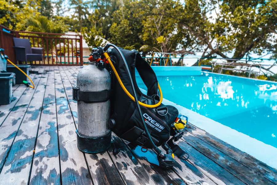 Wie sicher der ein oder andere von euch mitbekommen hat, war ich Ende letzten Jahres in Deutschland und bin im Januar zurück auf die Seychellen geflogen. Das war genau die Zeit, als 10 Tage in Quarantäne vorgeschrieben waren. Ihr könnt euch sicher vorstellen, wie glücklich ich war, als sich für mich die Chance ergab, diese im Hilton Seychelles Labriz Resort & Spa auf Silhouette verbringen zu dürfen. Ein Tauchgang stand zwar auf dem Programm, aber dass ich meinen Tauchschein dort machen würde, davon wusste ich zu diesem Zeitpunkt noch nichts.